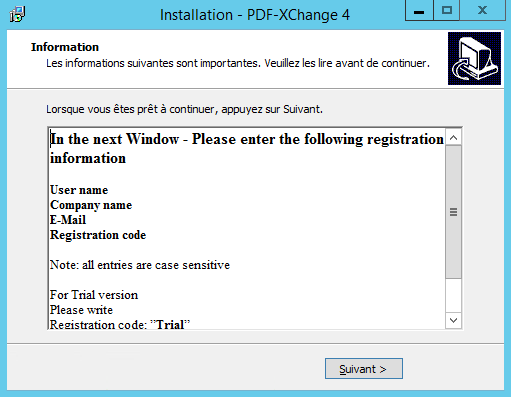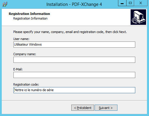 - Saisir le numéro de série et cliquer sur le bouton « Suivant » pour continuer.