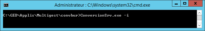 - En ligne de commande (en mode administrateur), créer le service « Automate MultiGest conversion » en saisissant : conversionSrv.exe -i