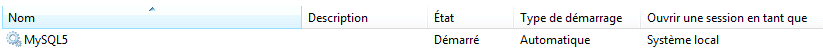 Ce service est lancé avec un compte système local automatiquement après l’installation de MySQL.