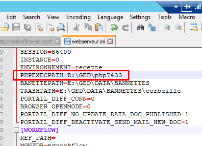 - Pensez à mettre à jour le fichier webserveur.ini avec le nouveau chemin de PHP