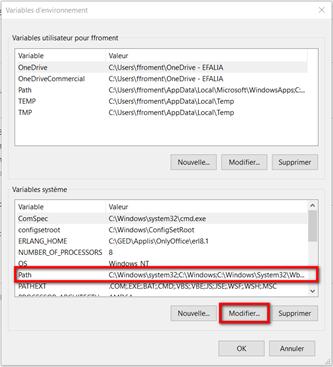Modification de la variable d’environnement « PATH »