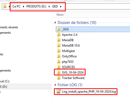 - Dans le dossier d’installation d’Apache et PHP, on retrouve une sauvegarde de l’ancienne configuration ainsi que le log.