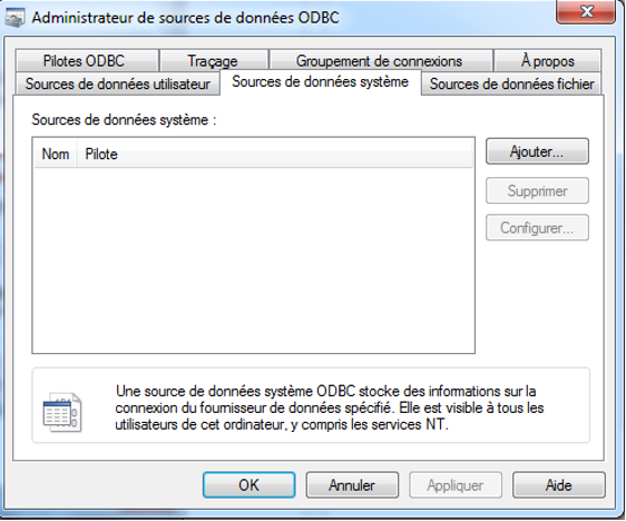 Les sources ODBC existantes s’affichent dans une nouvelle fenêtre.