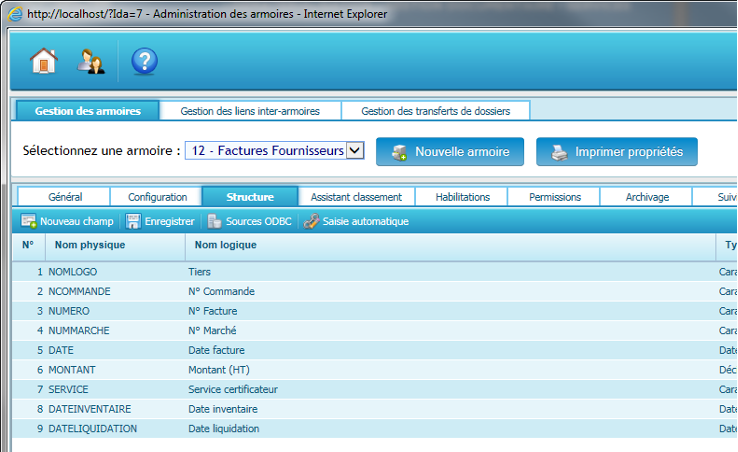 Pour obtenir la liaison dans MultiGest avec la nouvelle source ODBC il est nécessaire de se connecter dans MultiGest en mode Administrateur et se positionner sur une armoire.