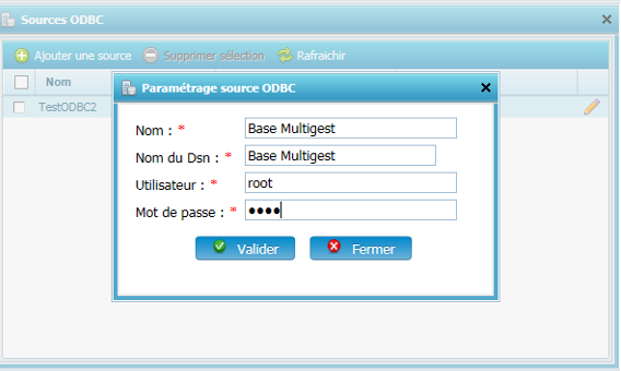 La source de données doit être paramétrée dans le serveur de MultiGest en installant en même temps un pilote ODBC qui va permettre de se connecter avec la source définie précédemment.