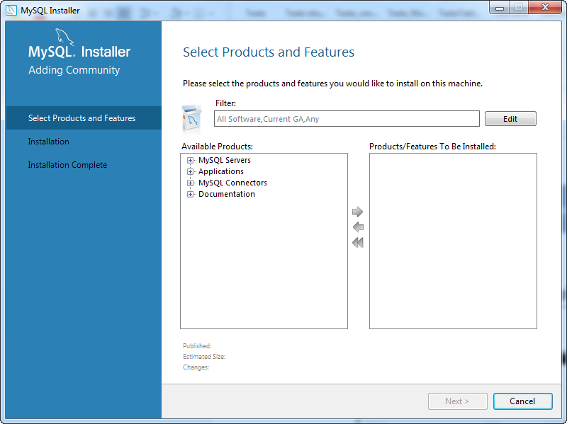 Sélectionner le produit à installer « MySQL Connectors » correspondant à la version de votre serveur.