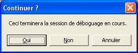 Les conditions d’arrêt sont les suivantes : Fin du traitement, atteinte d’un point d’arrêt positionné ou génération d’un message d’erreur. En ce cas, la fenêtre correspondante est automatiquement activée.