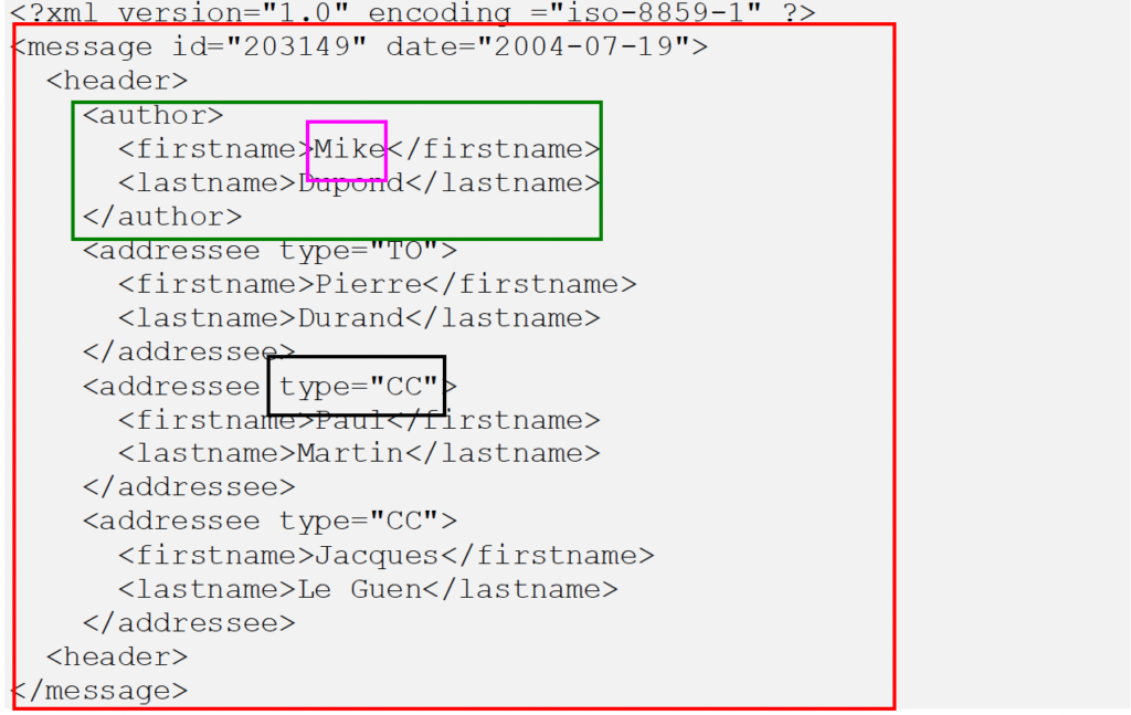 /message/header/addressee/firstname[lastname=’Martin’] renvoie