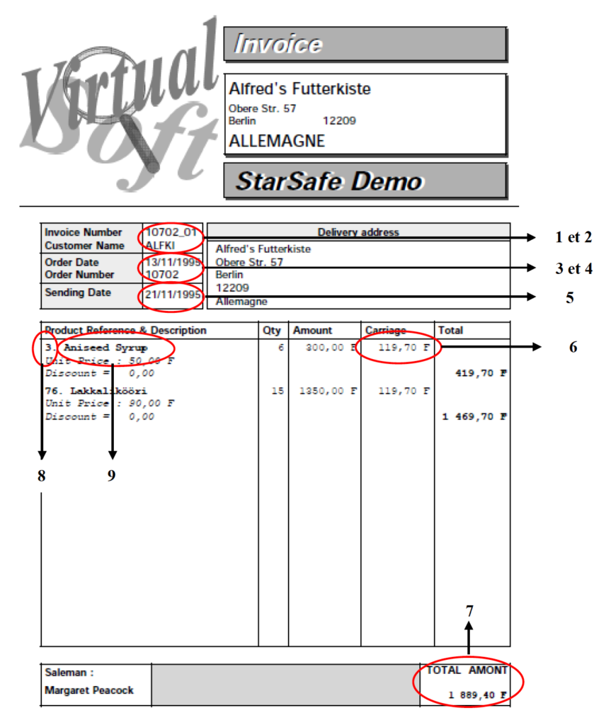 - Exemple de la facture ci-dessous (mode ASCII) :