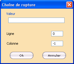 Cliquer sur Modifier affiche une boîte de dialogue permettant de modifier la chaîne de rupture. Cliquer sur Supprimer efface définitivement la ligne sélectionnée.