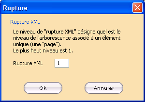 Ensuite, saisir le niveau de rupture ou de découpage de ce fichier XML (pour de plus amples informations, cf § page XML).
