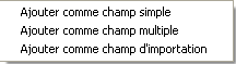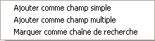 Cliquer avec le bouton droit de la souris sur la sélection donne accès à un menu contextuel permettant d’ajouter cet élément en tant que champ simple ou champ multiple ou, de le marquer comme chaîne de recherche.