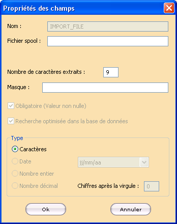 Il est possible d’affiner les propriétés d’un champ d’importation par