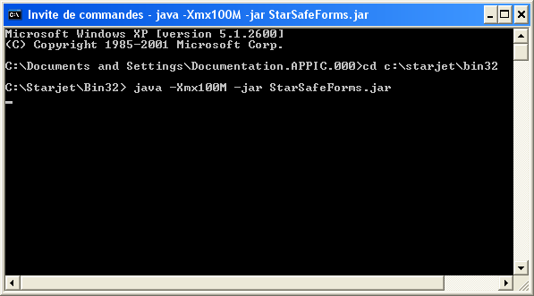\> java –Xmx<taille mémoire maximale> -jar StarSafeForms.jar