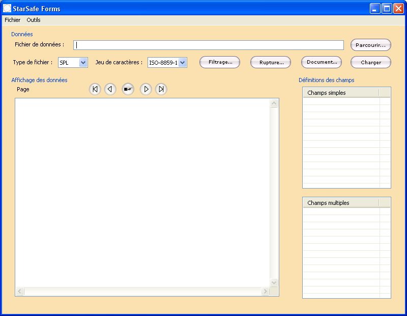 Ce module créé des fichiers de paramètres enregistrés avec l’extension .XML et contenant, outre la définition des champs d’archivage, d’autres informations concernant notamment le formatage des données ainsi que les filtres à utiliser pour décoder les fichiers .SPL.