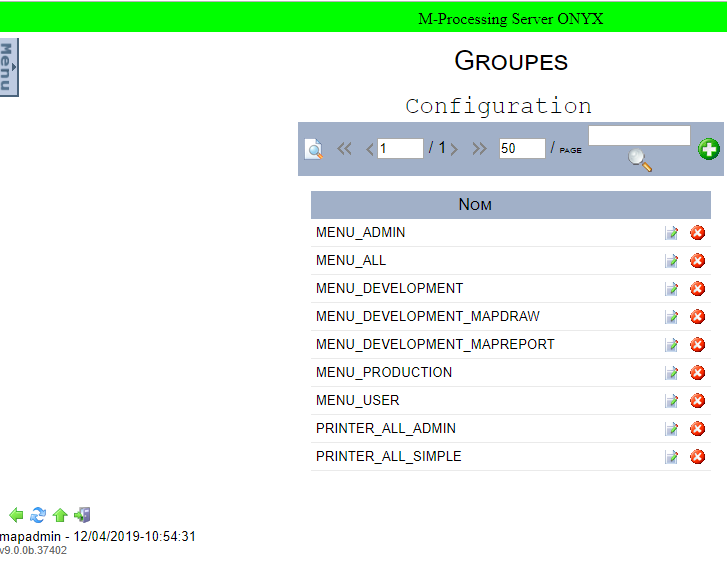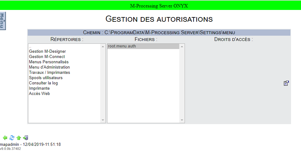 – Autorisations = Utilisateurs ou groupes qui ont accès au menu.