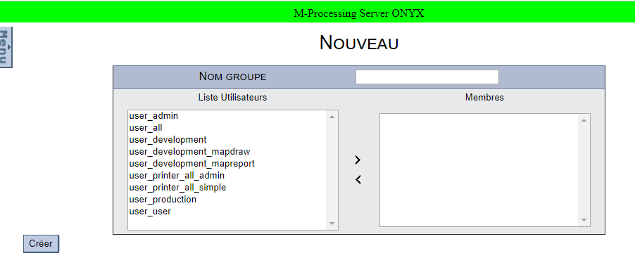 Pour créer un nouveau groupe, cliquer sur la rubrique Gestion des groupes. La page suivante s’ouvre :