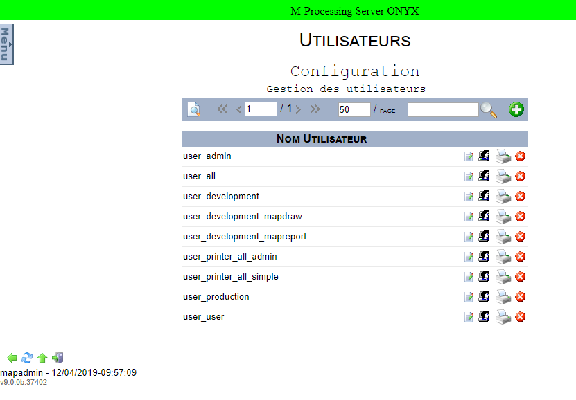 La rubrique Gestion des droits d’accès se trouve dans le Menu Administration. Elle va permettre d’administrer l’accès des utilisateurs à l’interface ONYX Server.
