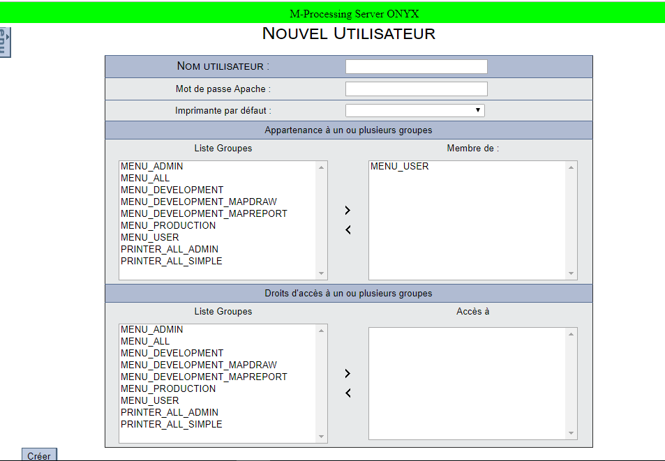 Pour créer un nouveau groupe, cliquer sur la rubrique Gestion des groupes. La page suivante s’ouvre :