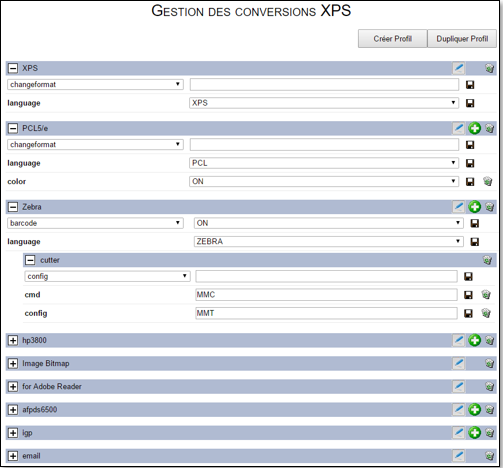 En complément de ces conversions standard, il est possible d’adapter la conversion en fonction du type de destination via un fichier de configuration des conversions XPS (gestion de la couleur, résolution, options de finition…).