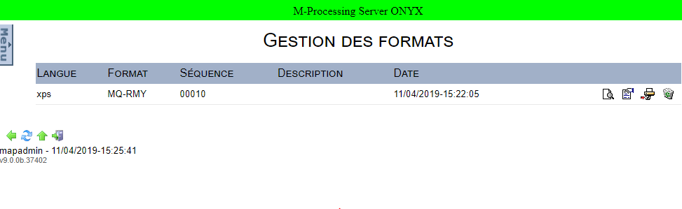 Aller dans le menu Gestion M-Designer > Gestion des Formats pour visualiser la liste des formats déjà disponibles sur l’interface :