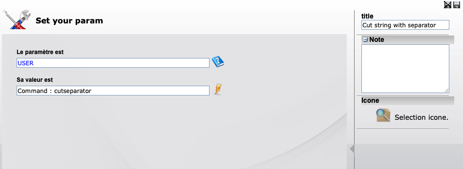 LPR RMTSYS(xxxxx) (…) destopt('Z:map_userdata:FROMAS400=USER=&USER;OUTQ=&OUTORI;SPLFNAME=&SPLFNAME;STARTPAGE=&STARTPAGE;STOPPAGE=&ENDPAGE;USRDTA=&USRDTA;FORMTYPE=&FORMTYPE')Ensuite, dans le workflow Onyx, pour récupérer la valeur “USER” par exemple, il faut mettre “USER=” dans le séparateur de début de sous chaine et “;” dans le séparateur de fin de sous chaine.