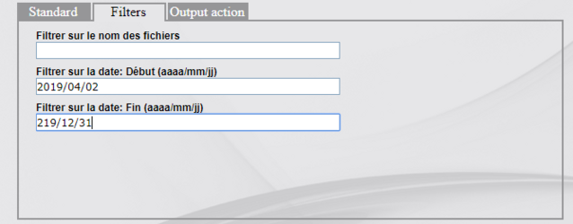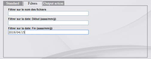 L’onglet Filters permet d’ajouter des filtres de sélection des fichiers en fonction de leur nom ou de la date.